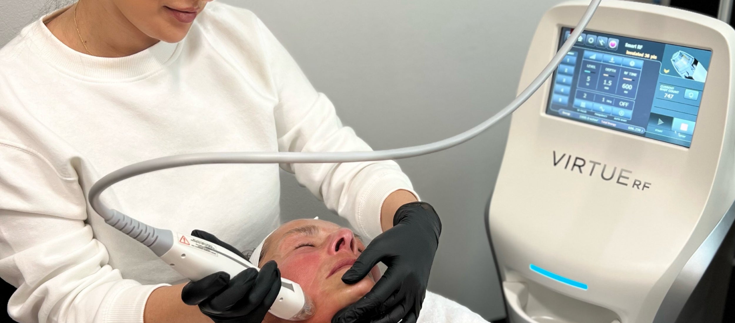 Reveal your most radiant skin with Virtue RF Microneedling. This cutting-edge treatment blends the proven power of microneedling with advanced radiofrequency technology to naturally lift, tone, and smooth your skin.